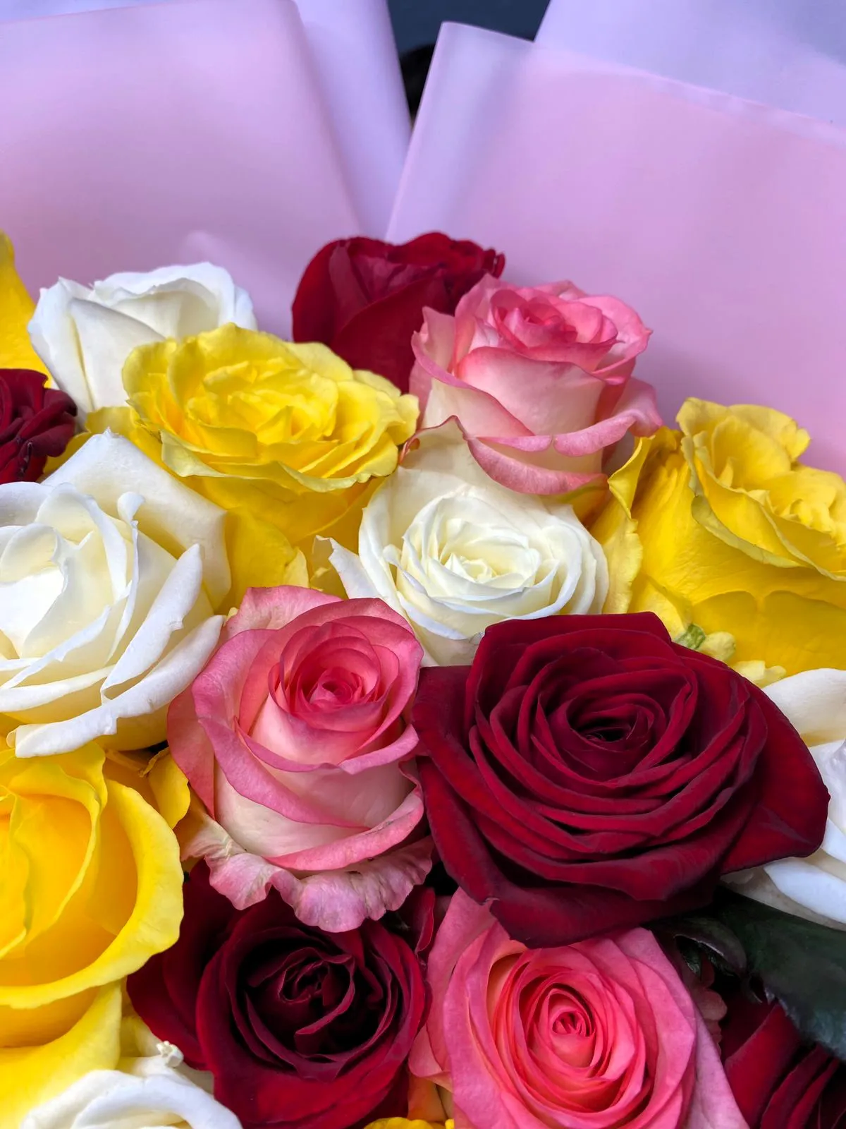 Представьте: 31 роза, каждая из которых сияет своим уникальным оттенком. От нежной розовой мечты до страстной красной, от солнечной желтой радости до загадочной фиолетовой тайны, от чистой белой искренности до экзотической оранжевой энергии.