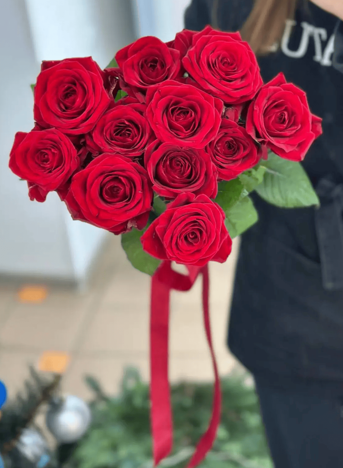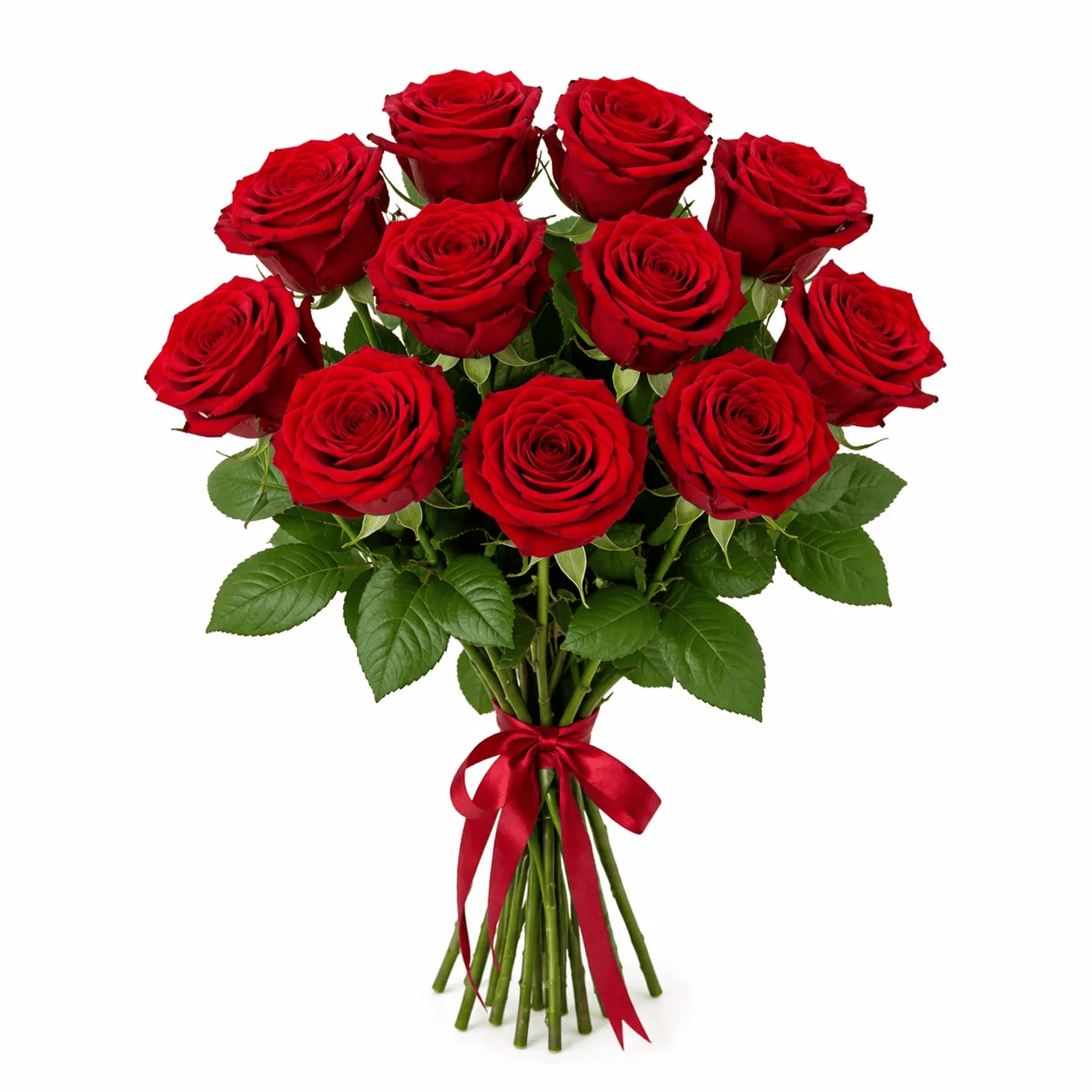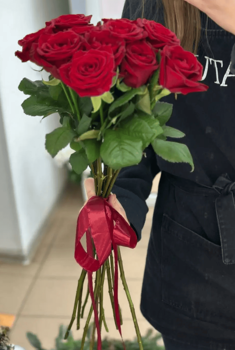 Букет из 11 красных роз под ленту - это элегантное и выразительное признание в чувствах. Насыщенные алые бутоны символизируют любовь, страсть и искреннее восхищение, а лаконичное оформление без упаковки делает акцент на природной красоте цветов.