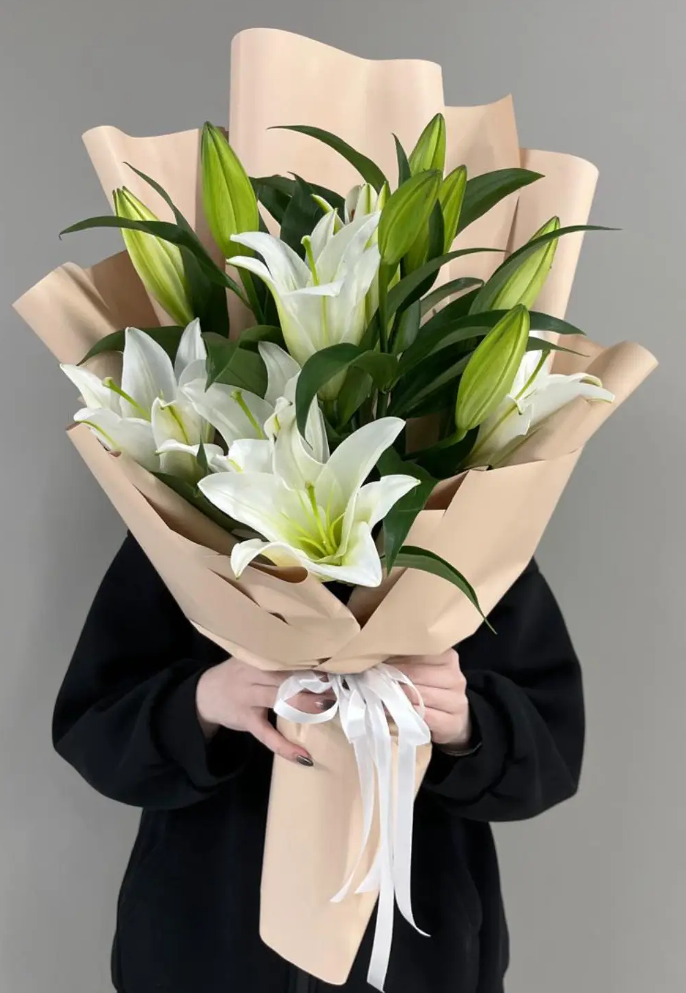 Букет из белых лилий символизирует чистоту, нежность и утончённость.✨ Чистота чувств и безупречный стиль.