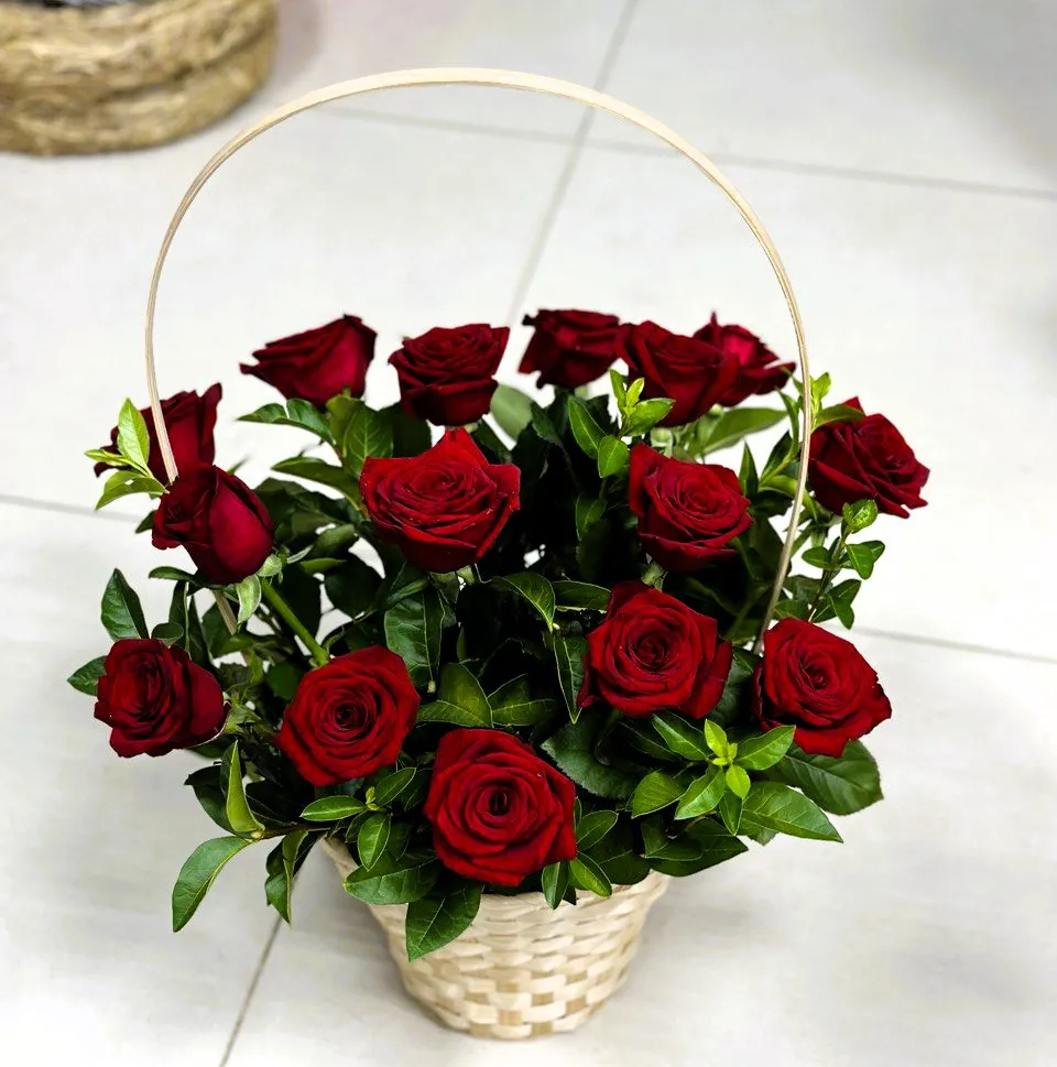 Корзина с красными розами — это не просто цветочная композиция, а настоящий символ любви и страсти. Красные розы всегда были олицетворением романтики и преданности, а их насыщенный цвет привлекает внимание и создает атмосферу тепла и уюта.