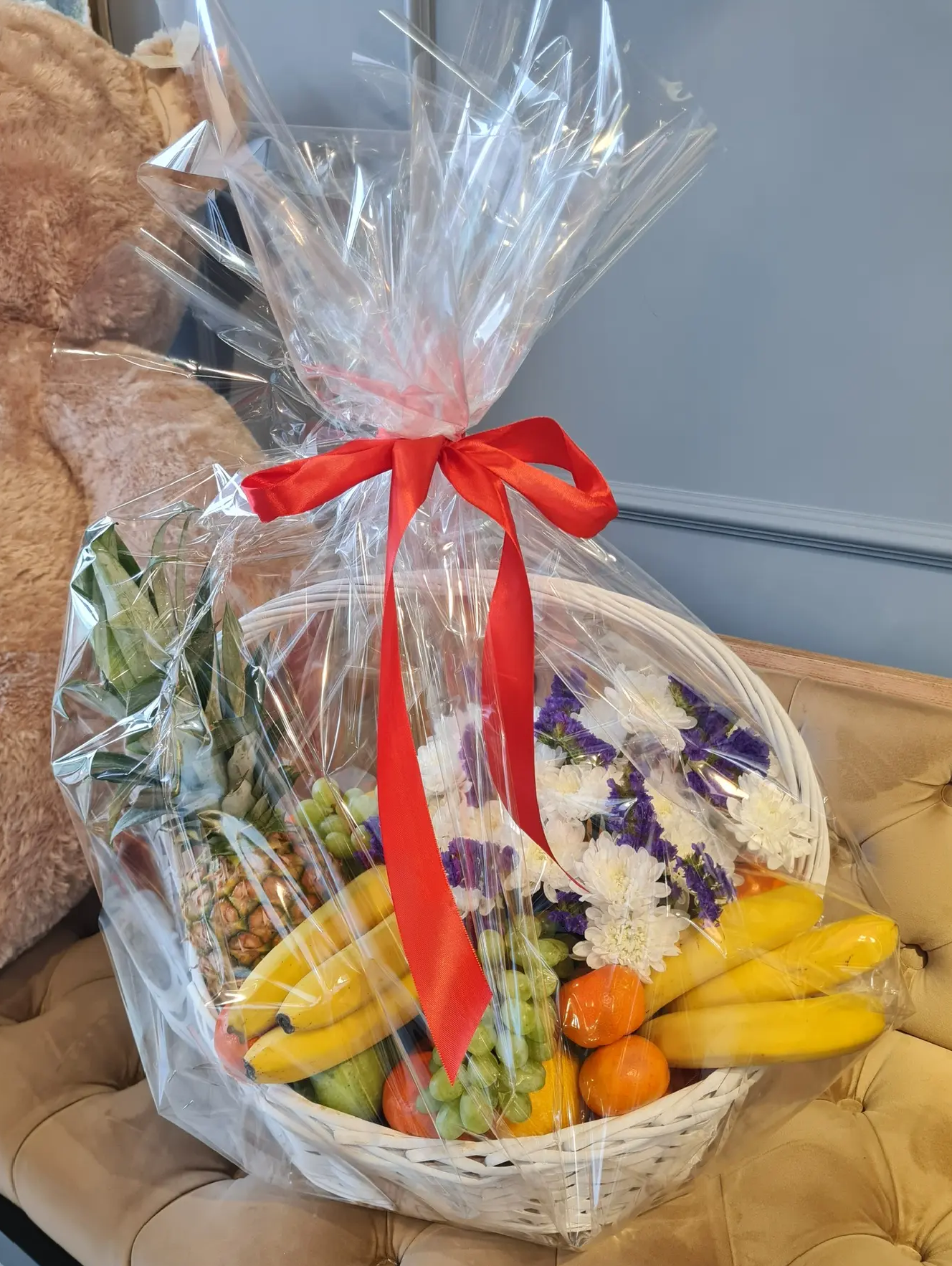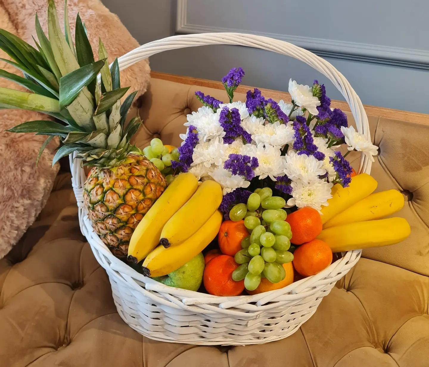 Фруктовая корзина с хризантемами