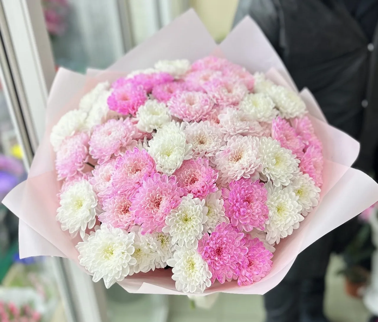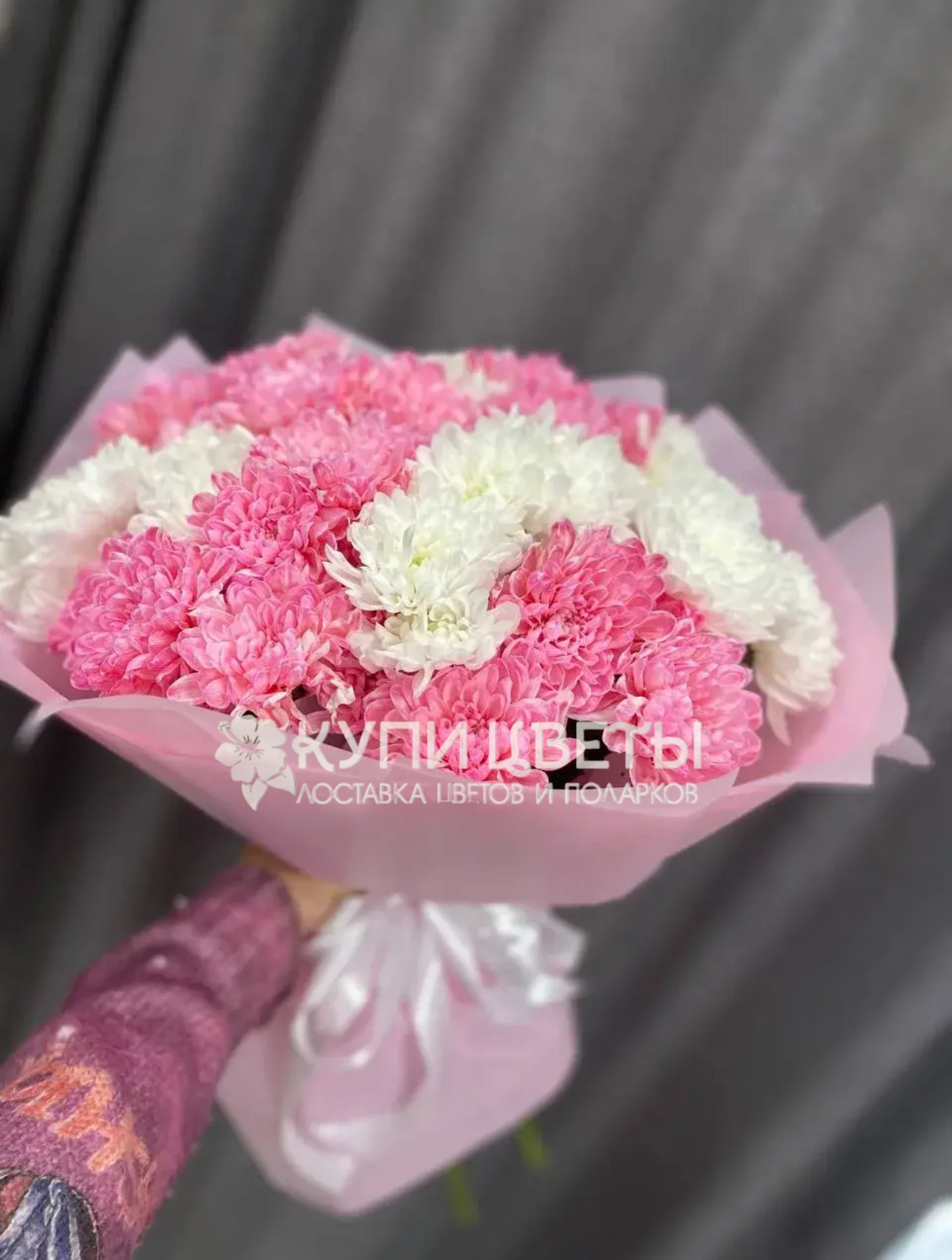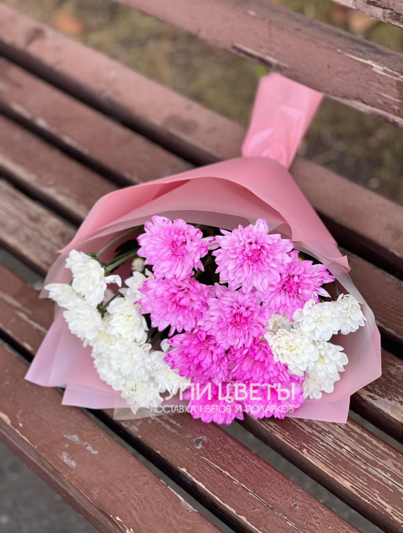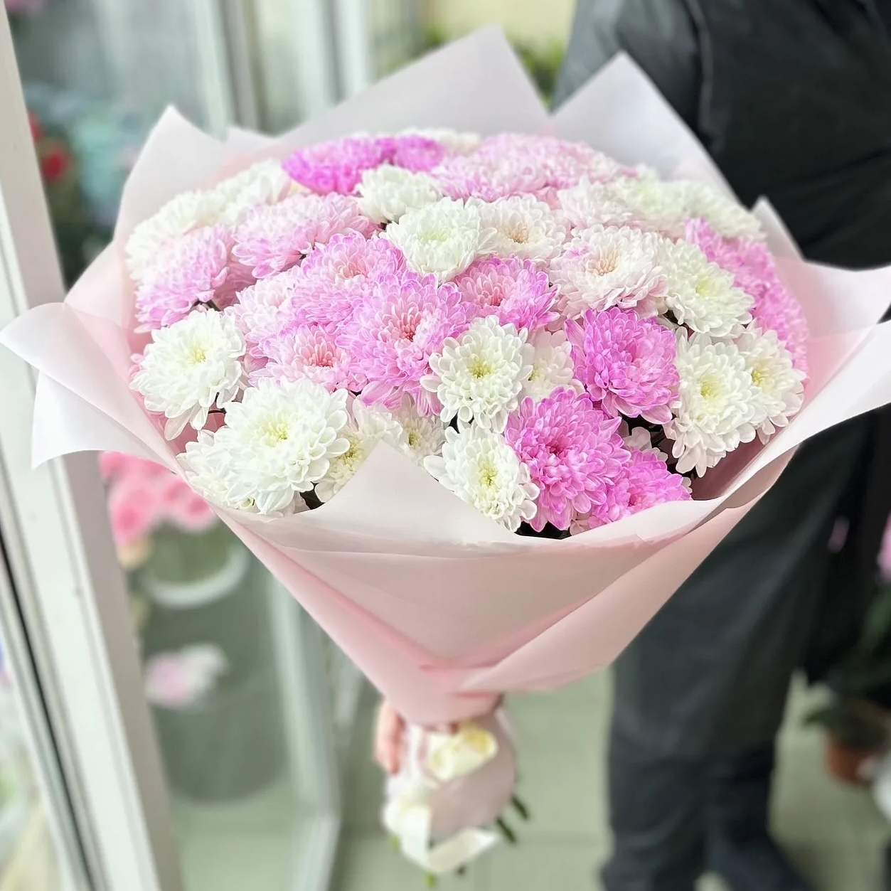 Кустовые хризантемы,упаковка,лента |