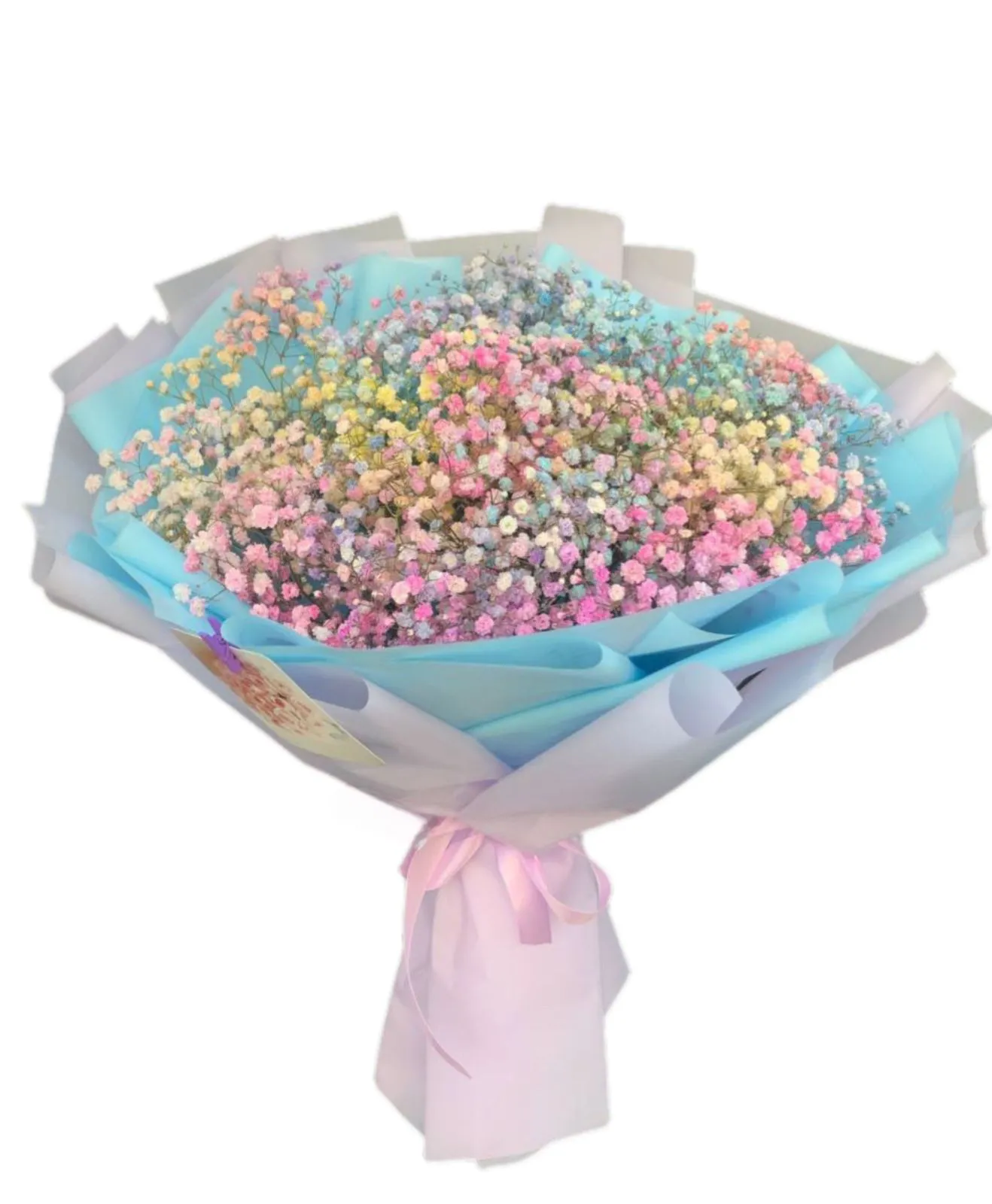 Сделайте день особенным, подарив этот великолепный букет из разноцветных гипсофил .Этот яркий и стильный подарок поднимет настроение вашим близким и любимым.