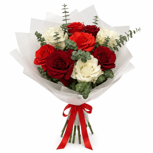 Нежный и утончённый букет из 9 французских роз с эвкалиптом - это гармония изящества, свежести и современного стиля. Бархатные бутоны французских роз отличаются особой формой и глубиной оттенков, создавая благородную и романтичную композицию. Свежий эвкалипт добавляет легкий аромат и природную свежесть, подчёркивая естественную красоту цветов.
