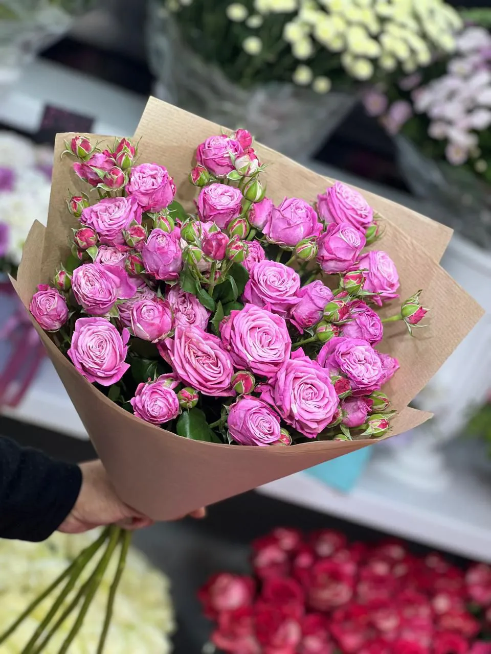 - Премиум - кустовая роза - 15 шт ,упаковка,лента