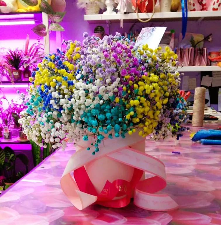 Из разноцветной гипсофилы Волшебная шляпная коробка