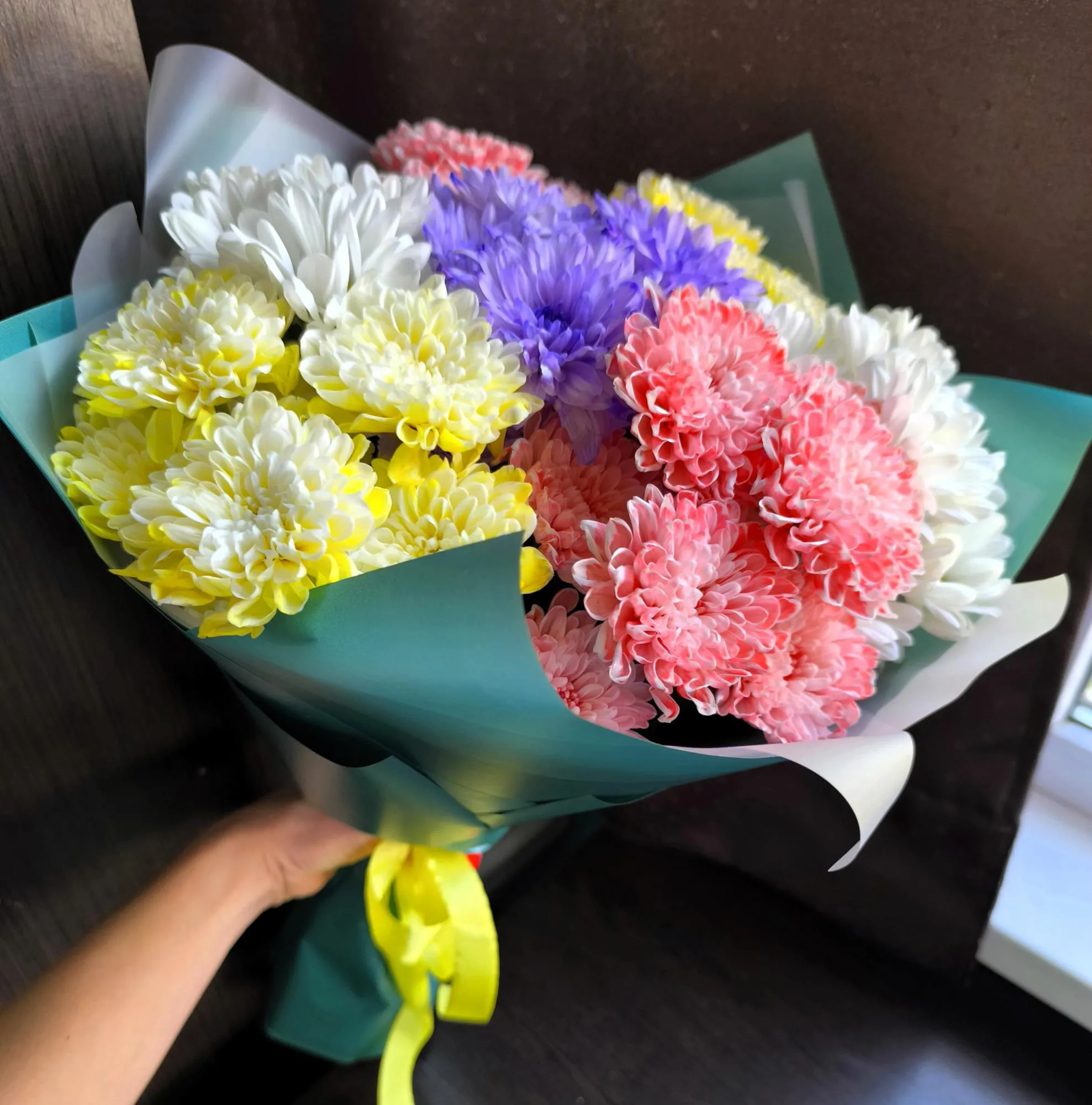 Букет из разноцветных хризантем Яркий секрет